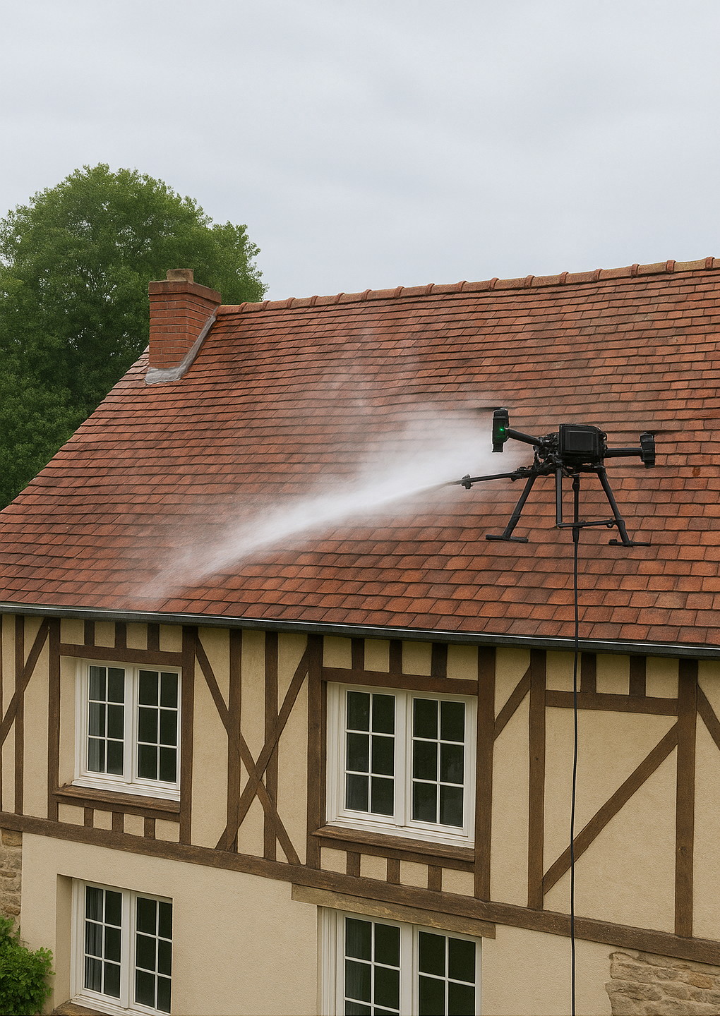 Préservez vos monuments historiques en Normandie avec Dronadair, expert du nettoyage de toiture par drone. Intervention sans échafaudage, produits agréés et respect des matériaux anciens. Technologie précise, sûre et écologique. Contactez Dronadair pour un entretien sur mesure de votre toiture patrimoniale.